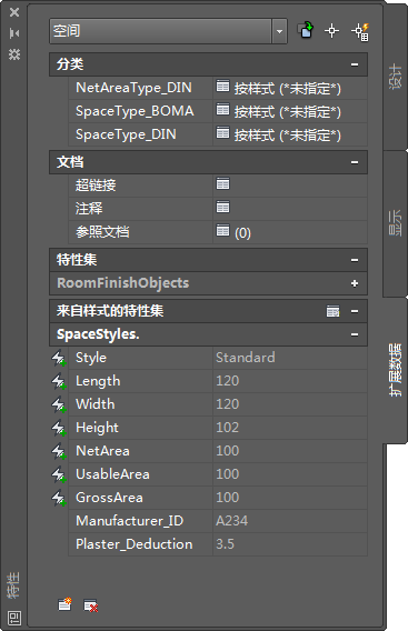 在“特性”选项板上,单击“扩展数据”选项卡。