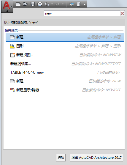 在应用程序菜单中,可以搜索一个命令,然后从匹配项列表中选择该命令。将从以下位置检索搜索结果: