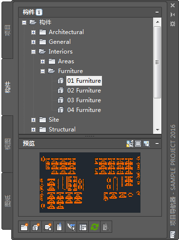 在“项目导航器”中,打开“构件”、“视图”或“图纸”选项卡。