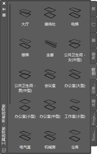 CAD 管理员或其他用户创建的自定义选项板也可包含具有按照您的项目或公司标准而自定义的空间样式和特性的空间工具。