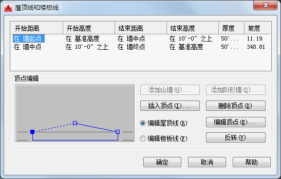 - 添加、移动或删除墙的屋顶线或楼板线中的顶点。