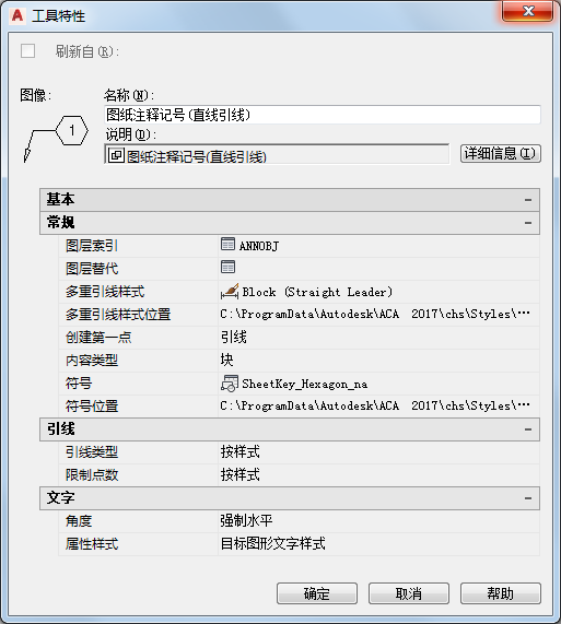 功能将这些工具复制到任何工具选项板。这些注释记号插入工具是从基本注释工具派生的,可通过“工具特性”工作表(可从注释记号插入工具的关联菜单访问)进一步自定义。