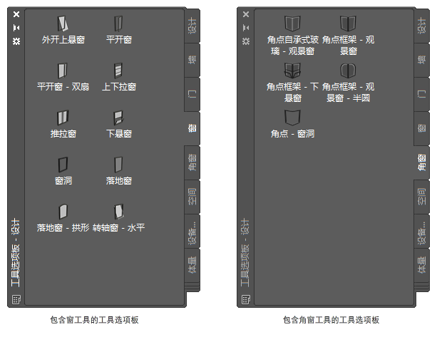 | CAD 管理员创建的自定义工具选项板 | 具有根据项目或办公室标准自定义的窗样式与特性的窗工具 |