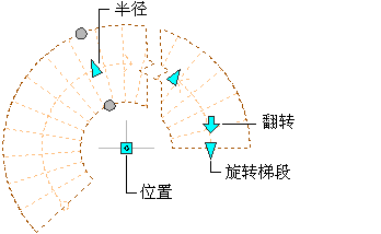 螺旋楼梯的“半径”、“翻转”、“旋转梯段”和“位置”夹点