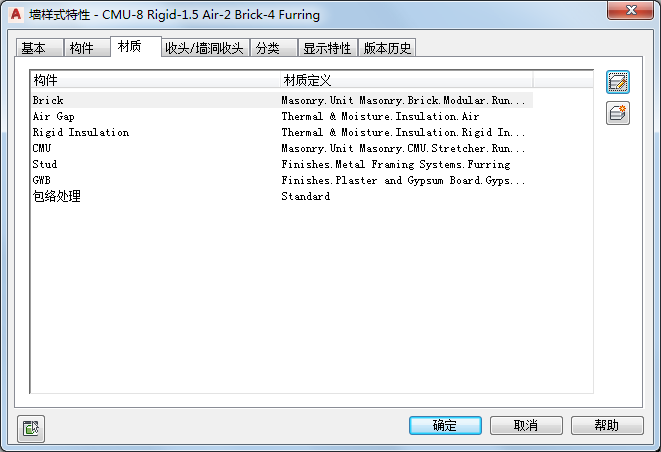 材质定义是构成 AutoCAD Architecture 中的显示系统所必需的,它们是功能强大的工具,与样式和对象定义一起使用后,可以自动化平面、剖面和立面中的显示。另外,可以使用“材质”自动特性定义将材质指定(和这些材质的特性)连接到已指定了材质的对象的明细表中。