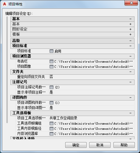 可以定义或修改高级项目特性,例如标准、图像、注释记号、详图构件和工具选项板。