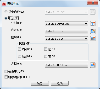 | 为选定的格线创建并指定新的竖梃定义 | 单击 |