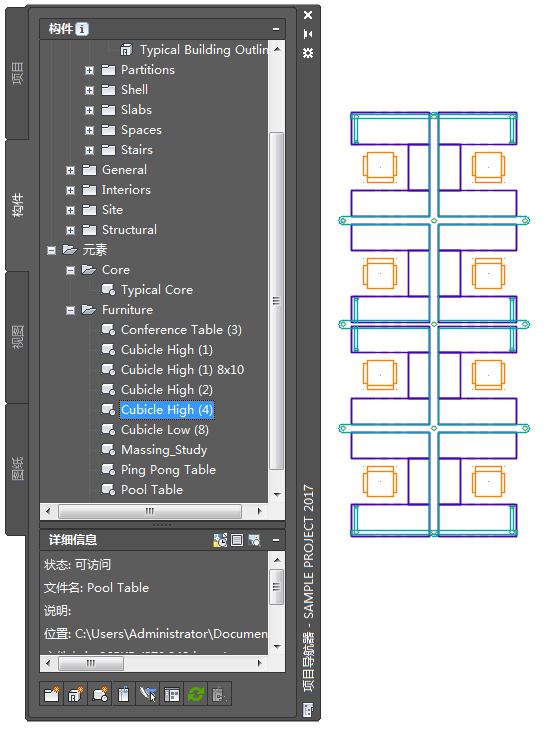 此时将在 AutoCAD Architecture 的绘图区域中打开元素。现在可以对其进行编辑。