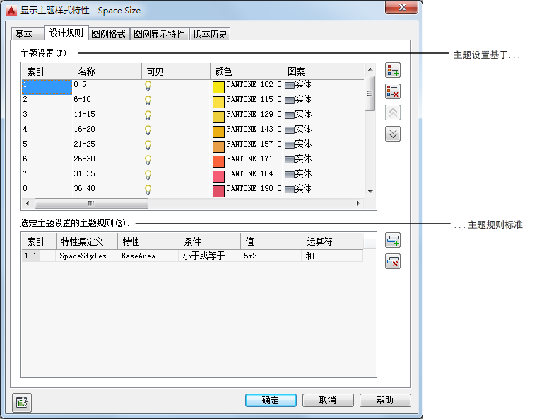 显示主题样式定义了特殊显示主题,可用于通过亮显满足您指定的条件的对象来合并图形中的非图形数据。亮显类型由一个或多个主题设置控制,每个设置都指定特定的颜色填充、图案填充或线型。对于每个主题设置,都有一个或多个决定哪些对象使用该设置亮显的主题规则。