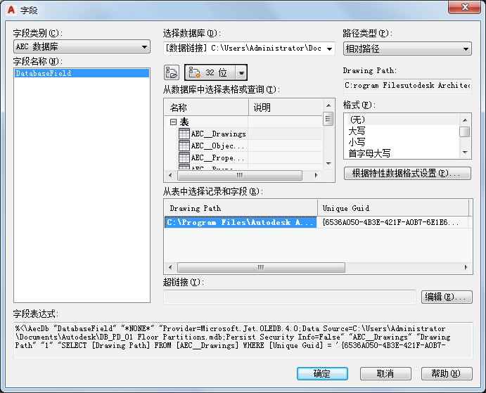 可以将来自多个数据源的数据链接到 AutoCAD Architecture 图形。为了链接到数据源,可以使用以下数据库提供程序: