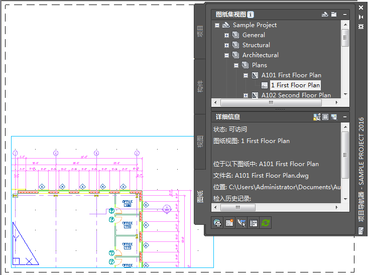 图纸视图是图纸上的图纸空间视口,它是在将视图图形或模型空间视图从“项目导航器”选项板中拖放到图纸上时生成的。
