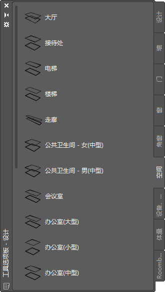 也可以在工具选项板上以单列方式显示工具。如果使用单列列表,则始终显示工具文字。