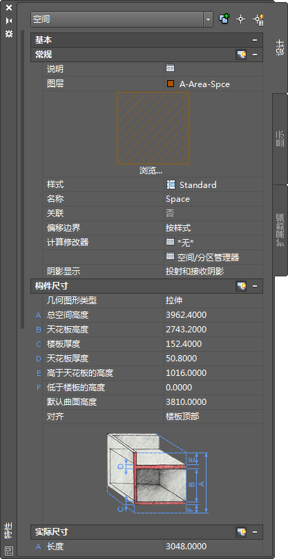 若要将修改器应用于空间的净边界、可用边界和总边界,请创建并应用一个特性集定义,该定义包含这三个边界的计算面积和周长值的特性。