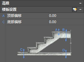 注: “顶部厚度”与“底部厚度”设置值当前对楼梯或梯边梁没有影响。此外,顶部偏移对楼梯并无可见的影响。底部偏移会延伸或截断任何附着的梯边梁。如果显示概略的楼板至楼板高度,这两种偏移值都会对其造成影响。