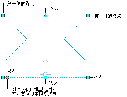 还可以定义立面的深度(其长度),方法是在“特性”选项板上修改立面边界各条边的长度。