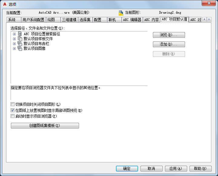 执行以下步骤可以指定软件在其中搜索项目、选项板、样板和其他项目文件的默认文件夹。