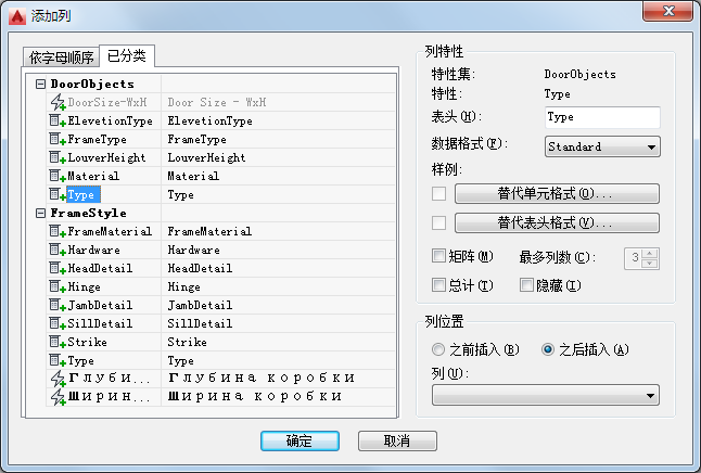 每列包含特性集中一个特性的值。指定的特性的特性集定义必须在图形中存在,才能为其创建列。