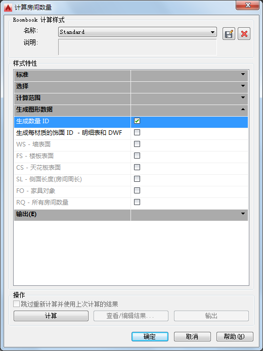 在“计算房间土方量”对话框中,在“样式特性”下的“生成图形数据”列表中,选择“生成土方量 ID”。