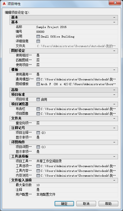 | 项目类型 | 工具选项板文件位置 | 项目工具选项板编组 |
