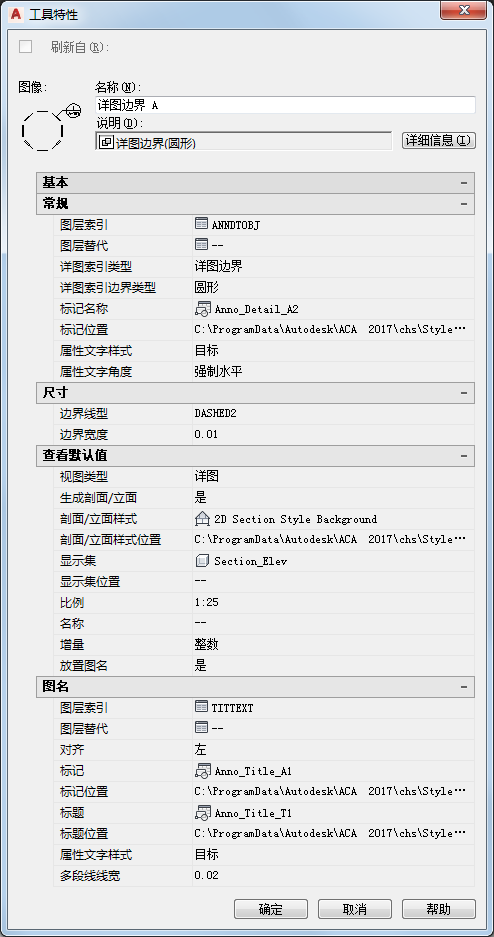 | 图层替代 | 常规 | 如有必要,可在此为详图索引符号指定图层索引替代。 |