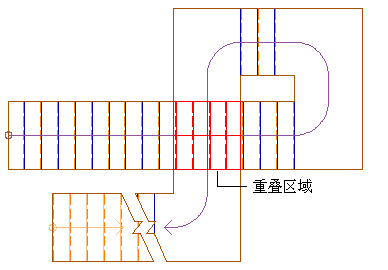 使用以下步骤可以创建重叠楼梯并设置显示特性,以便正确查看重叠部分。在本例中,我们将以红色外框线显示高于重叠部分的所有楼梯构件。