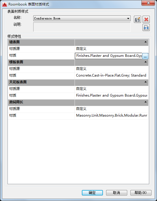 房间土方量计算允许用户应用和替代计算的面上的材质。也可以为表面材质样式定义材质。