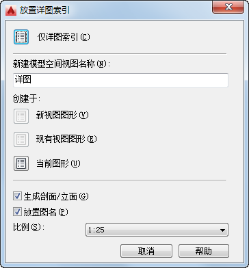 执行以下步骤可放置一个详图索引,用于在当前视图图形中创建详图。