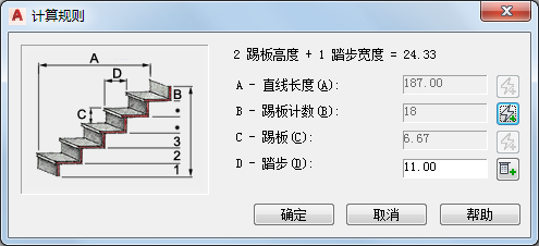 | 指定楼梯梯段中每块踏步的踏步宽 | 将所有字段都设置为 |