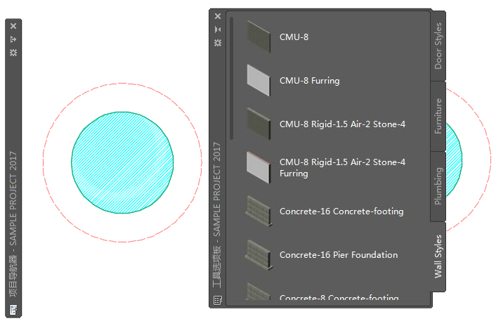 隐藏的工具选项板集(左侧)和重新显示的工具选项板集(右侧)