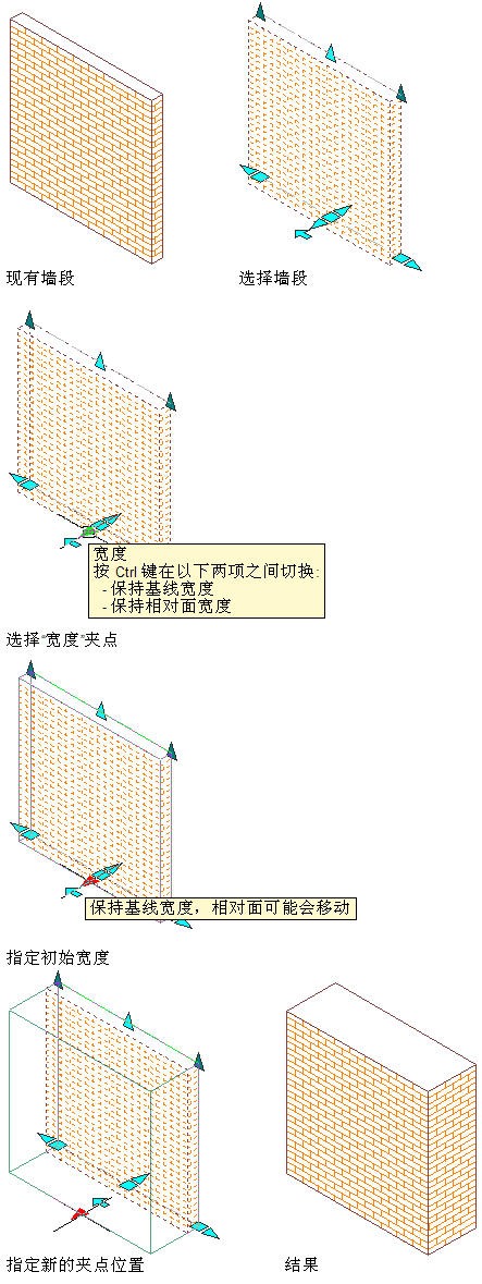 使用夹点修改墙宽度并保留墙的相对面