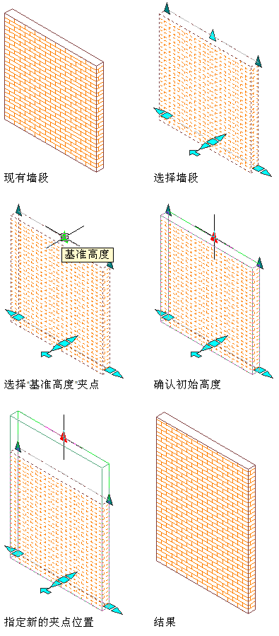 使用夹点修改墙的基准高度