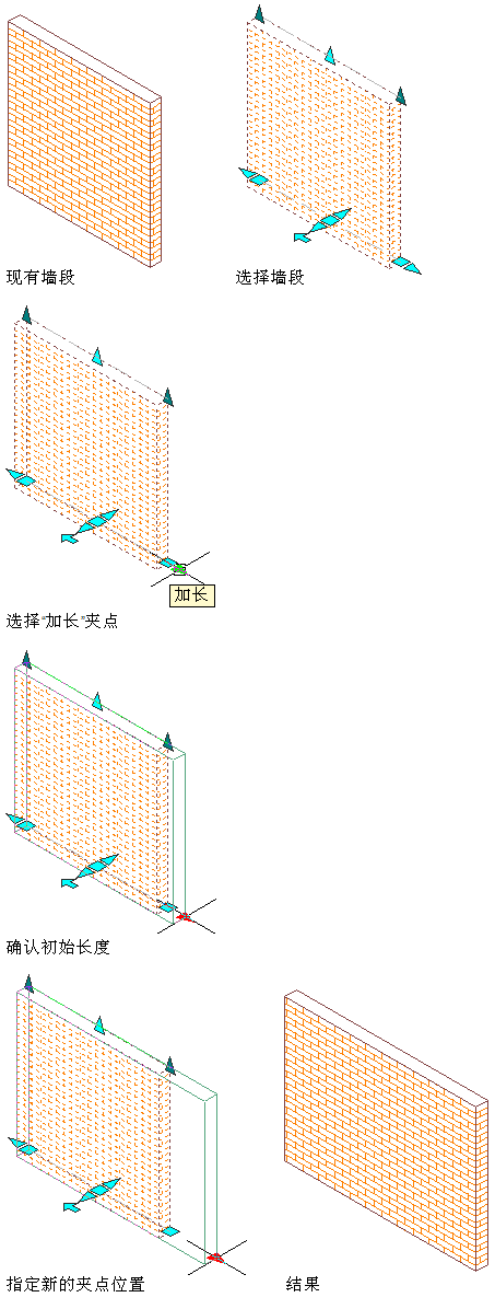 使用夹点修改墙的长度