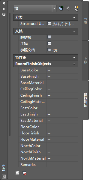 可以使用“选项”对话框的“AEC 对象设置”选项卡上的 “特性替代”下拉菜单选项来控制特性集定义在“扩展数据”选项卡中的列出。