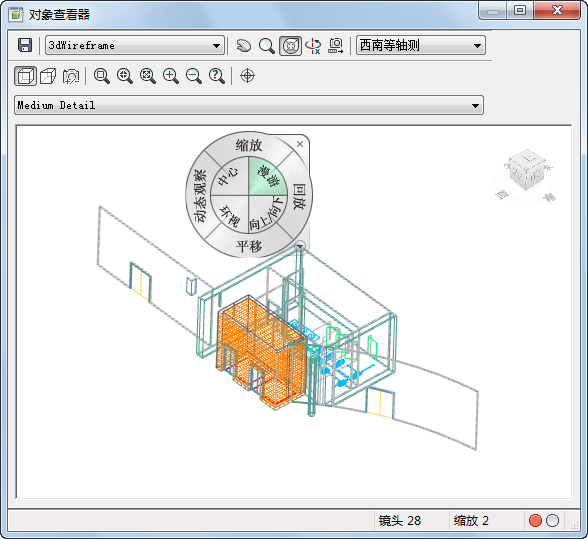 SteeringWheels 将多个常用导航工具结合到一个单一界面中,可以为您节省时间并减少单击次数。控制盘特定于查看模型所处的上下文。