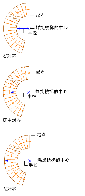 半径测量从螺旋楼梯的中心点开始,到选定的对齐点。