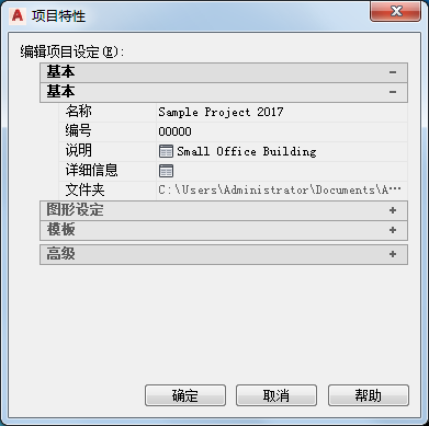 | 编号 | 项目编号在您创建项目时定义。可以在此处输入新编号。 注: 在“图形设定”下,可以指定是否将项目编号作为前缀添加到项目中创建的每个项目图形。如果在项目生命周期内修改了项目编号,则现有文件名将随之改变并将重设路径。