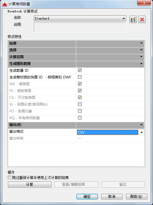 启动输出过程。CSV 输出将为每个房间土方量类别生成一个文件。每个文件都将以图形的名称和 Roombook 计算类型的名称作为前缀。