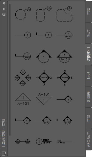 CAD 管理员或其他用户所创建的自定义选项板中,也可包含具有根据您的项目或公司标准而自定义的特性的详图索引工具。