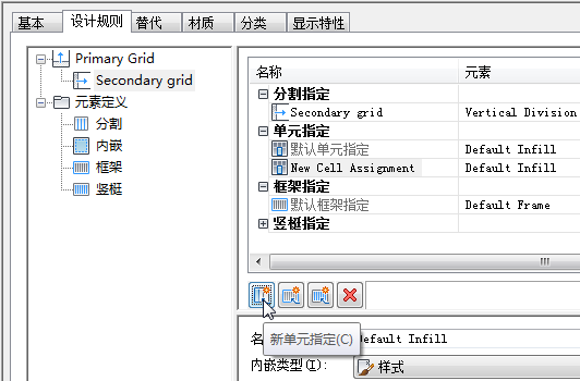 - 展开“建筑对象”,然后展开“幕墙样式”。