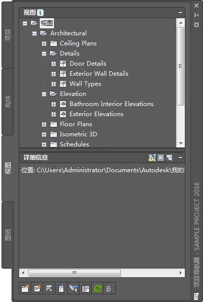 在“项目导航器”的“视图”选项卡上,可以创建建筑数据的各个视图。视图中包含构件,是在项目内添加注释(如备注、标记)和尺寸标注的主要位置。创建视图图形后,可以在其中创建模型空间视图。