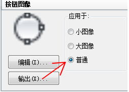 在“按钮图像”窗格中的“应用于”下,选择三个图像指定选项中的一个:“小图像”、“大图像”或“同时应用两者”。然后从图像列表中选择要输入的图像。