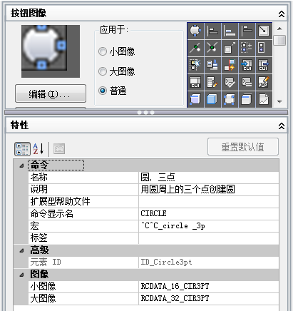 在图像列表中选择一个图像,图像名称将被指定给选定命令的“小图像”和/或“大图像”图像特性。