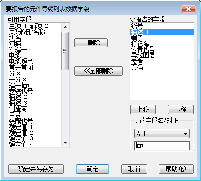 7. 在“要报告的元件数据字段”对话框的“可用字段”列表中,选择“Desc1”。