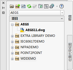 “项目管理器”将列出“AEGS”文件夹下的文件。此后,您添加的新图形将添加到绘图次序的末端。您现在即可访问完成本书中的练习所需的文件。