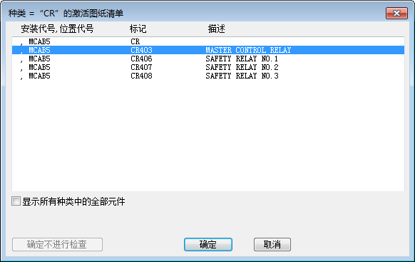 将显示“插入/编辑元件”对话框。请注意,AutoCAD Electrical 没有自动为继电器触点指定标记名称;在编辑框中仅有一个通用“CR”。确定继电器触点标记名称。继电器触点是一个辅元件,必须链接到激活项目的图形中的主继电器线圈。辅项会获取主继电器线圈上的标记名称。