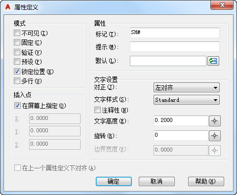 3. 在命令提示下输入 ATTDEF 以插入属性定义对象。