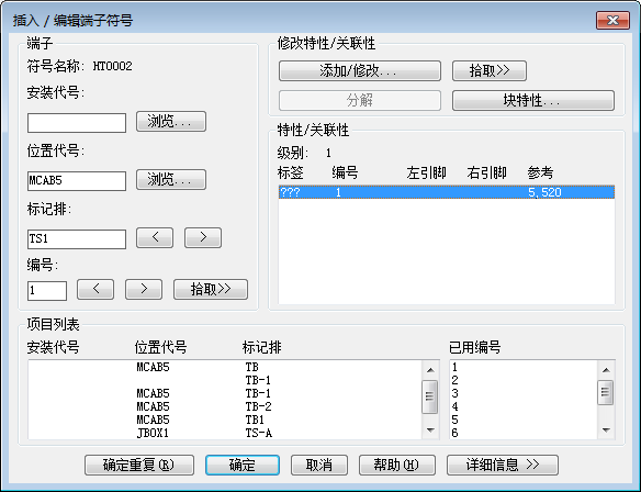9. 在“插入/编辑端子符号”对话框的“端子”区域中,指定: