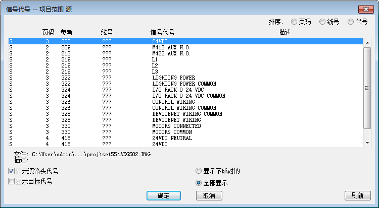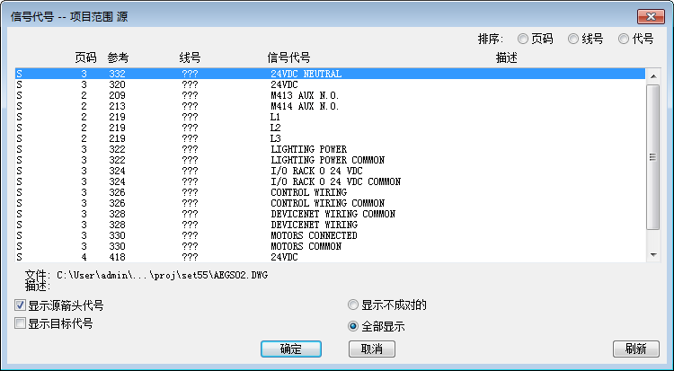 4. 在“信号代号 - 项目范围源”对话框中,选择以下选项: