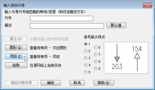 9. 在“插入目标代号”对话框中,单击“项目”。