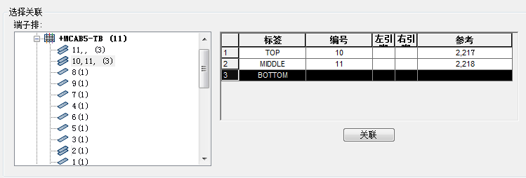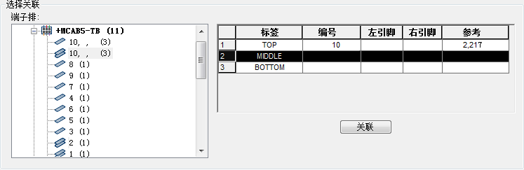 单击“关联”之后,中等级别将使用该对话框中“激活关联”区域的栅格中的端子号进行更新。